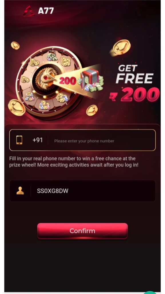 A77 Game me apko apna mobile number registered karna hoga dosto sabse pahle is ko apne Android phone me install karne ke baad apna number account bna sakte hai