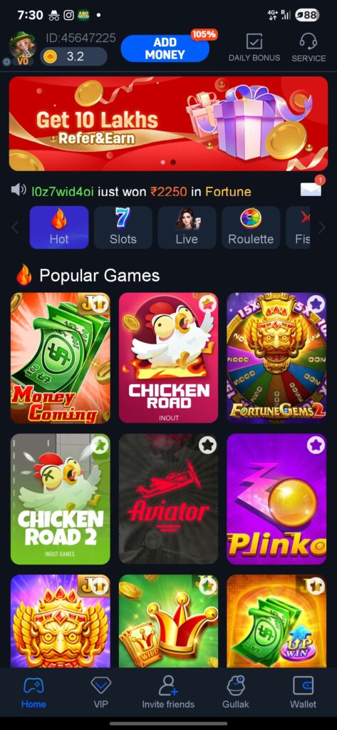 Dosto aap is game se daily ka aap achha paisa kama sakte hai is ko download karne per singup bonus free hai Dosto aap is se daily ka 15000 hajar se 20000 tak aap kamai ghar baithe kamai kar sakte hai dosto.